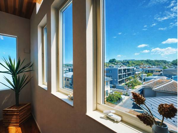 腰越の高台、落ち着きある住宅地、ルーフバルコニーから湘南を見渡す暮らし。