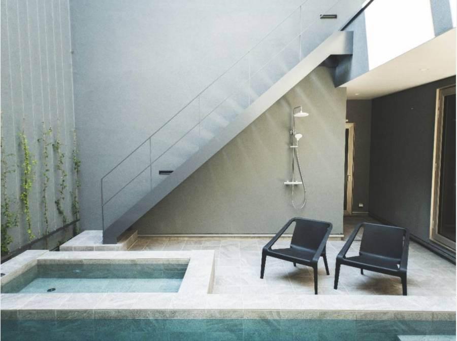 プライベート感満載のお庭には、温水プールと露天風呂、フィンランドサウナもございます。