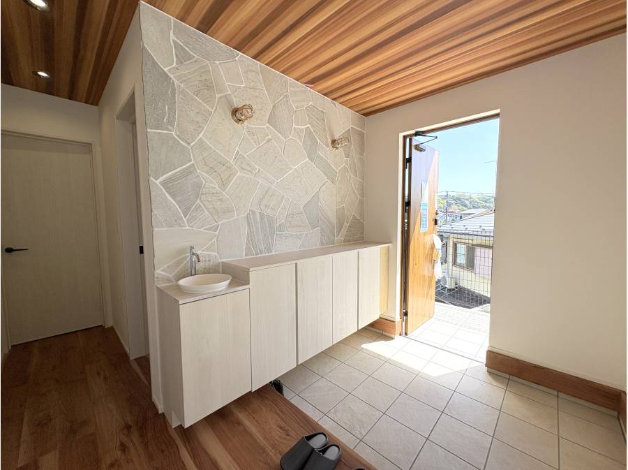 扉を開けると石張りがインパクトのある玄関ホール。