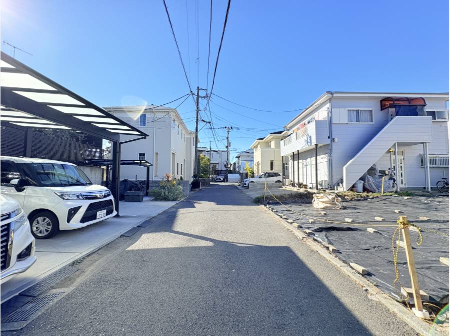 前面道路は交通量が少なく、静かで落ち着いた住宅地。