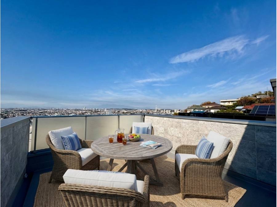 ルーフバルコニーからは富士山だけでなく、海と江ノ島も望める贅沢なロケーション