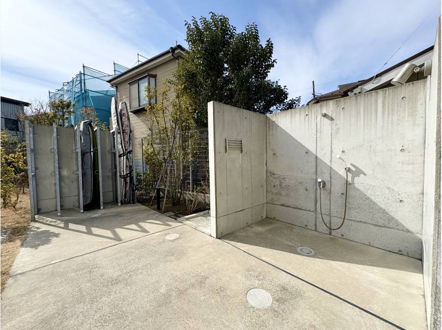 マリンアクティビティを楽しむ方には嬉しい共用部のサーフボード置場や屋外シャワーを備え、さらにペットとの暮らしも快適にする専用の足洗い場が設けられています。