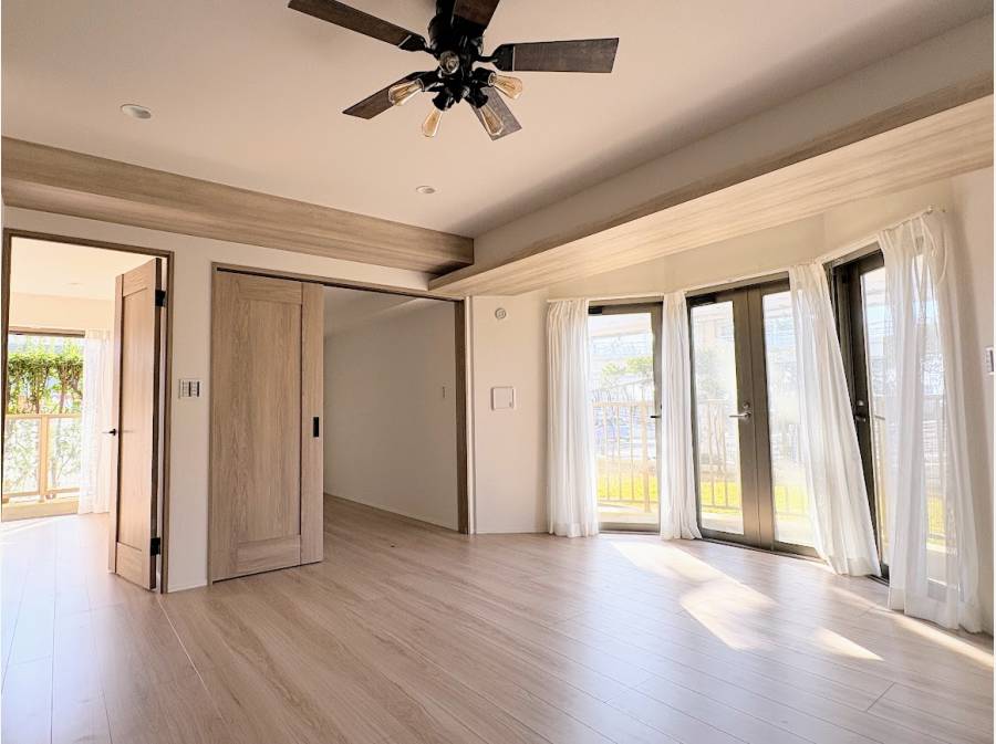 海向きの角部屋につき、開放感と陽光に包まれる心地よい空間が広がります。
