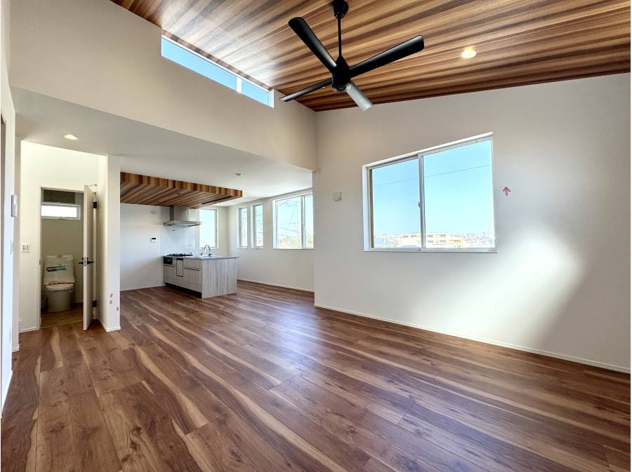 室内は天井高約2.9mの開放的なLDKや光溢れる吹抜け玄関など、ゆとりある設計が魅力。
