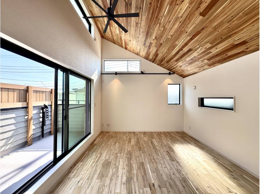 室内は床と天井にアカシアの無垢材を採用