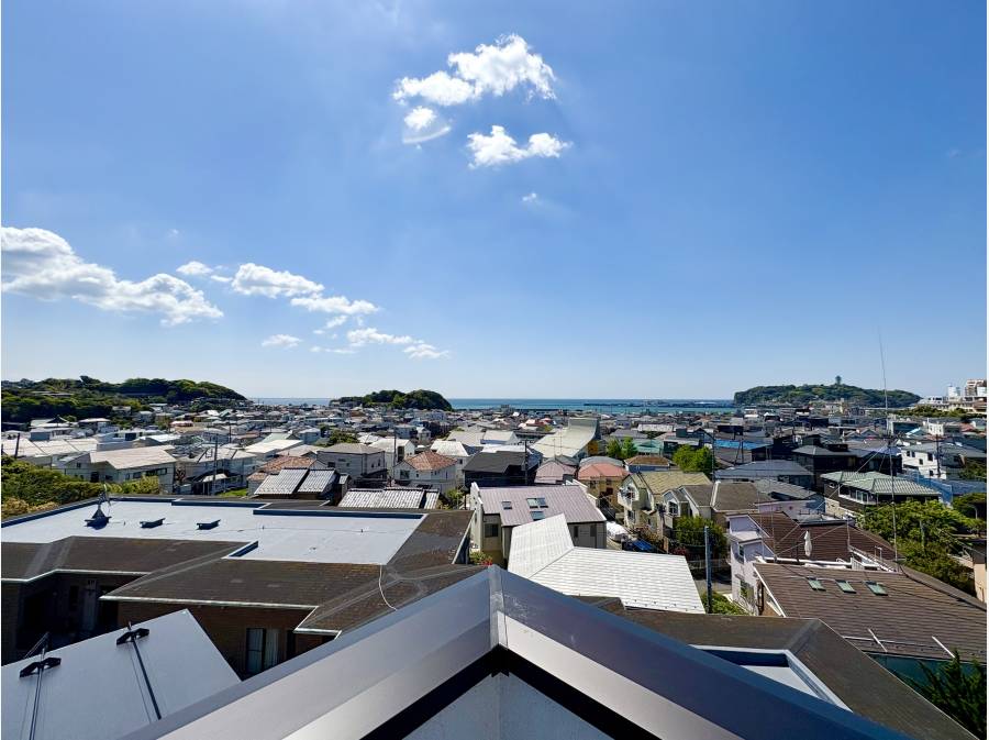 鎌倉市腰越の静かな高台に位置し、江ノ島と湘南の海を見渡せるデザイナーズ邸宅をご紹介します。