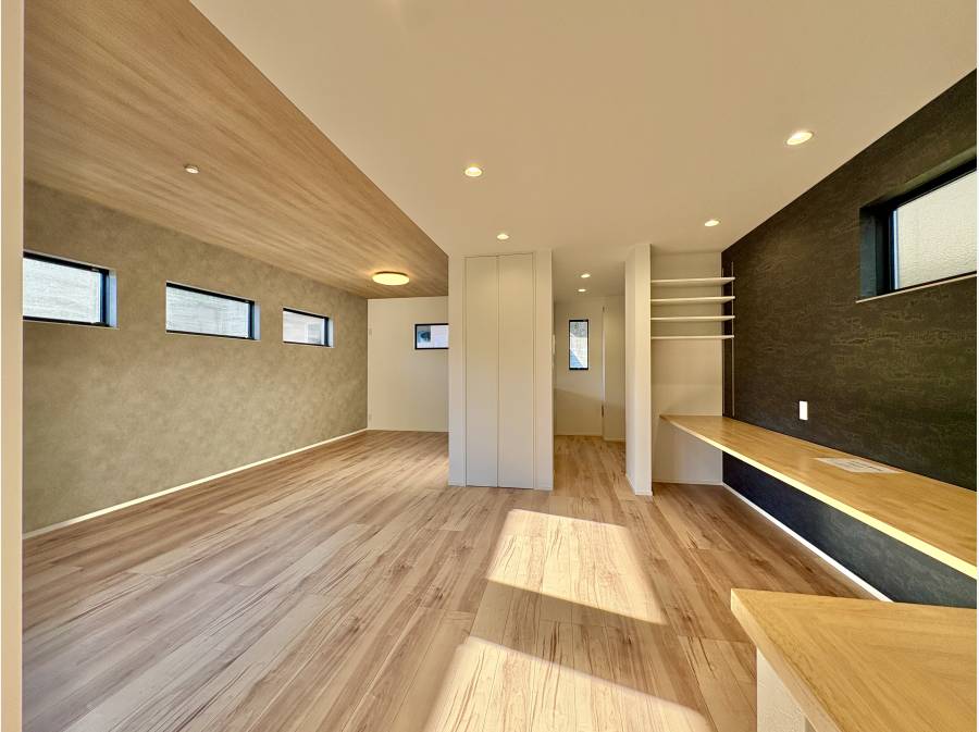 キッチン横には広々としたスタディスペースを設置しており、お子様が宿題をする際にも程よい距離感を保ちながら見守ることができます。