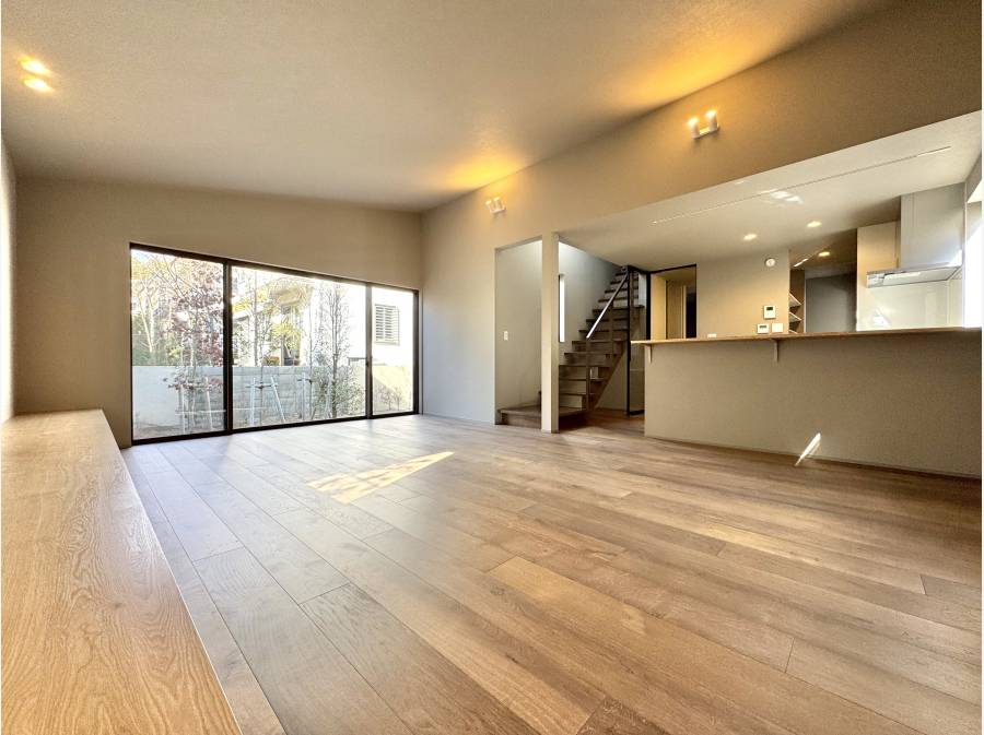 大きな開口部が庭と室内を自然につなぎ、季節の移ろいを暮らしの中に取り込んでくれます。