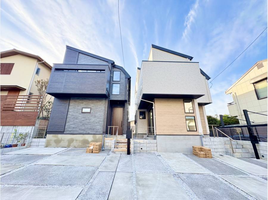 バルコニーが2つある、グレーを基調としたモダンテイストな新築邸宅が腰越に誕生いたしました!