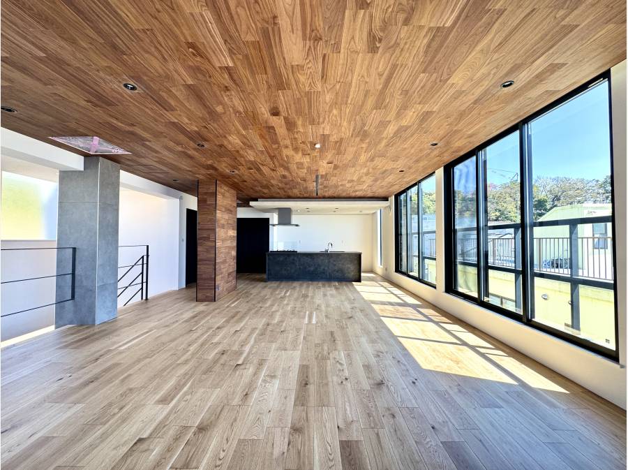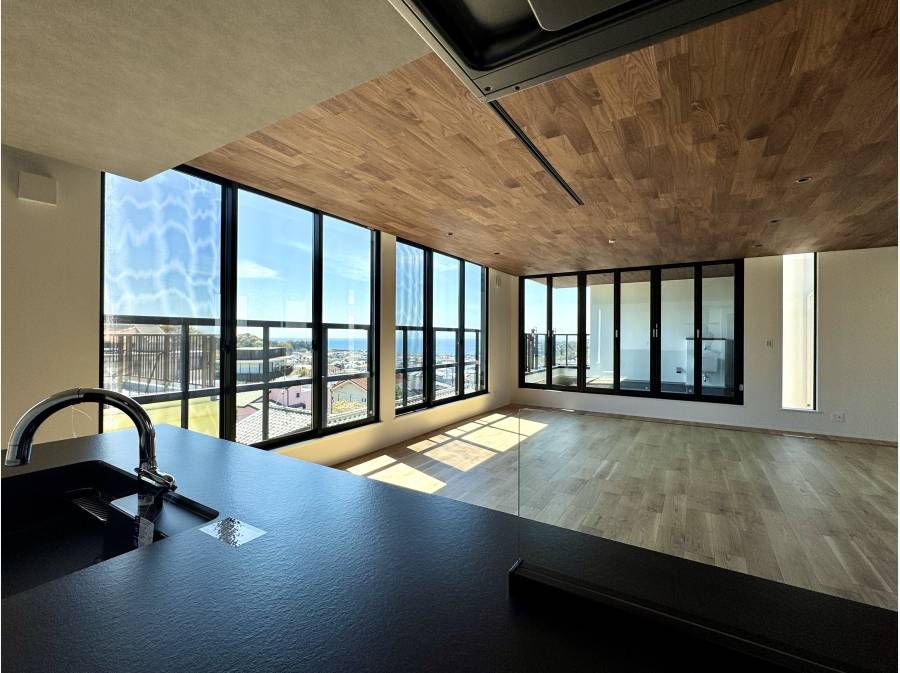 30帖の大型のLDKとリビングからつながる大型のテラスからは海を一望