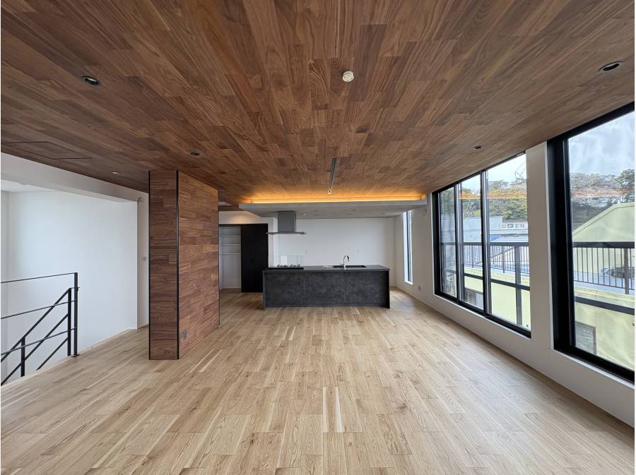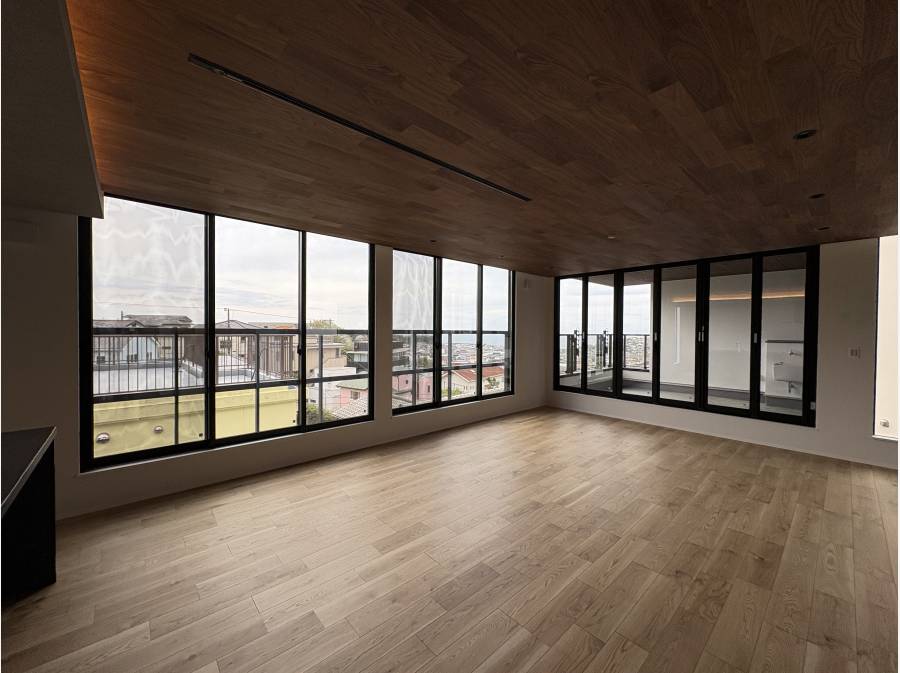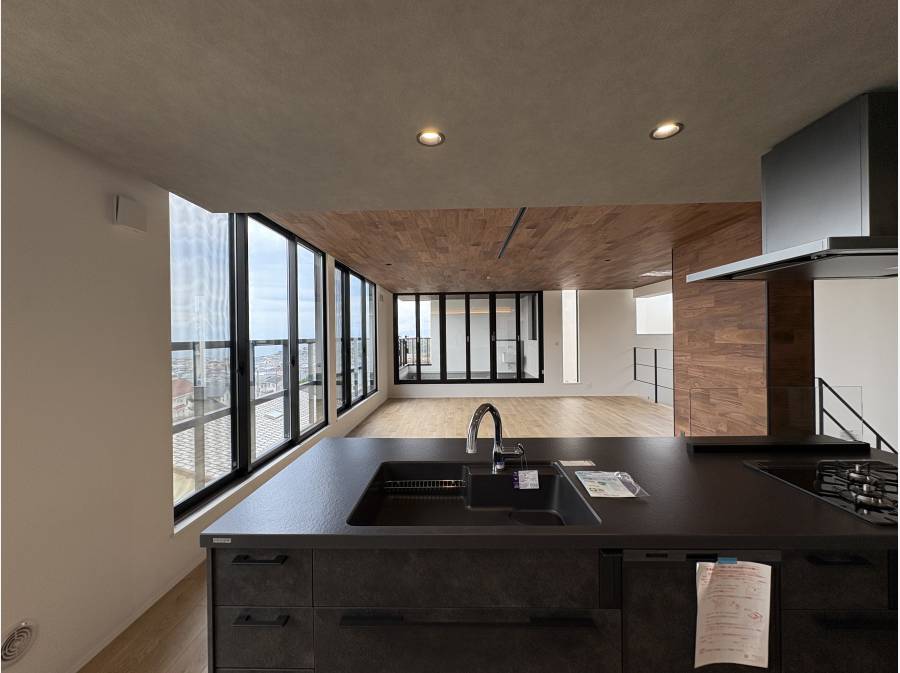 約30帖の2階リビングはアイランドキッチン、1階の洋間からも相模湾が楽しめます