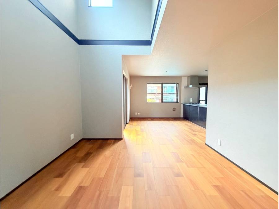 LDKは吹き抜け仕様で、光がたっぷり差し込みのびのびとした空間が広がる設計。