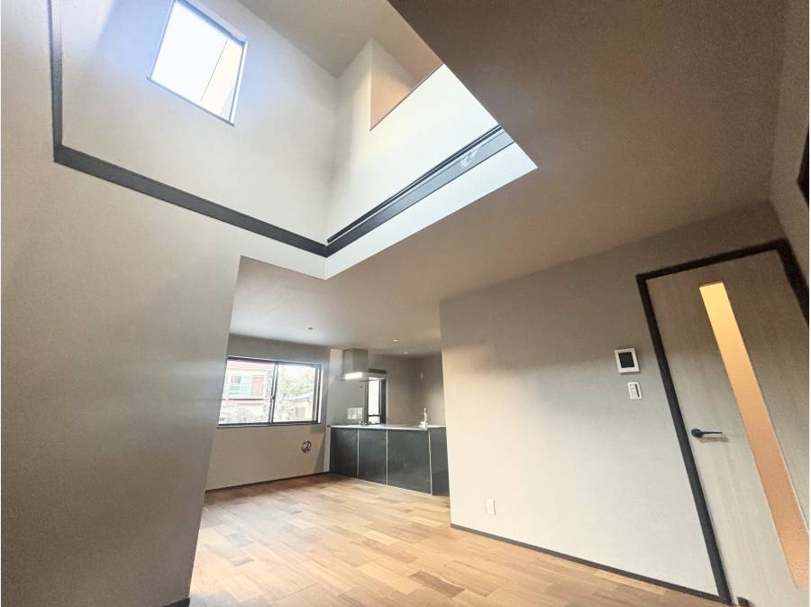 腰越、その落ち着いた街並みに映えるモダンな外観。この家は”ただの新築”ではなく、住む人のスタイルを鮮やかに描き出す創作住宅です。玄関をくぐると、広がるのは光がまっすぐ届くLDK。