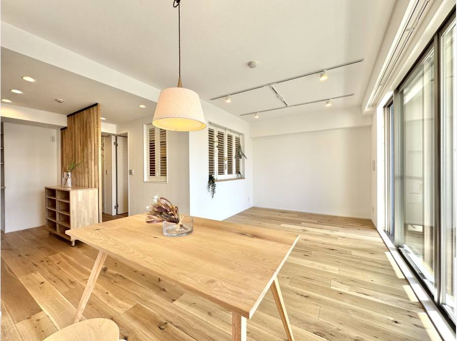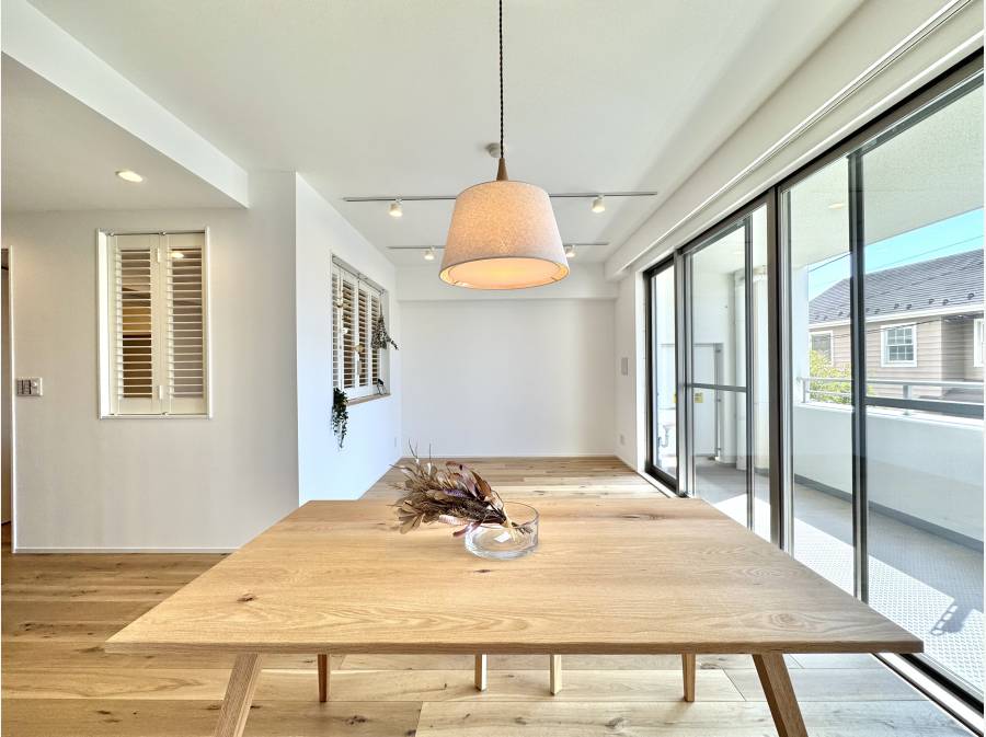材木座の穏やかな空気に包まれた、フルリノベーション2LDK。白と木目を基調にした室内は、光がまっすぐ入り、どこにいても心地よさが続きます。広いLDKは家具の配置がしやすく、窓辺で読書をしたり、ダイニングでゆっくり朝食をとったり。海までは徒歩約5分。朝の散歩や夕暮れの浜辺が、特別ではなく“日常”になる立地です。鎌倉らしい街並みと海辺の時間、どちらも楽しめる住まいです。